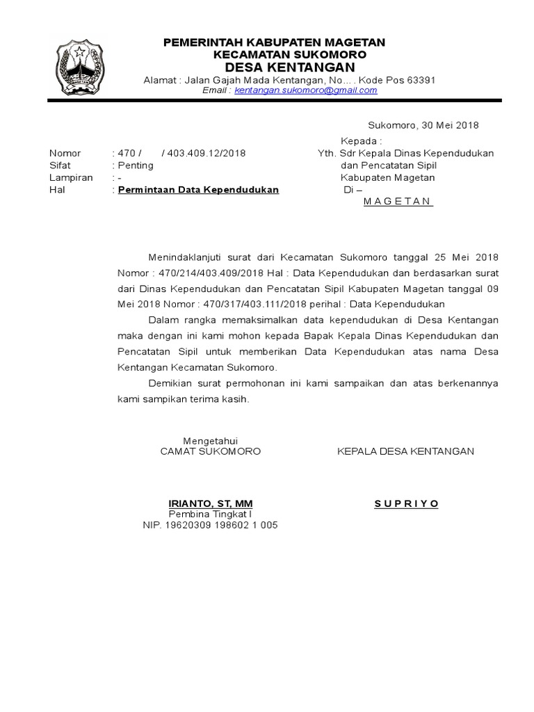 Permohonan Data Kepada Dinas Dukcapil Pdf